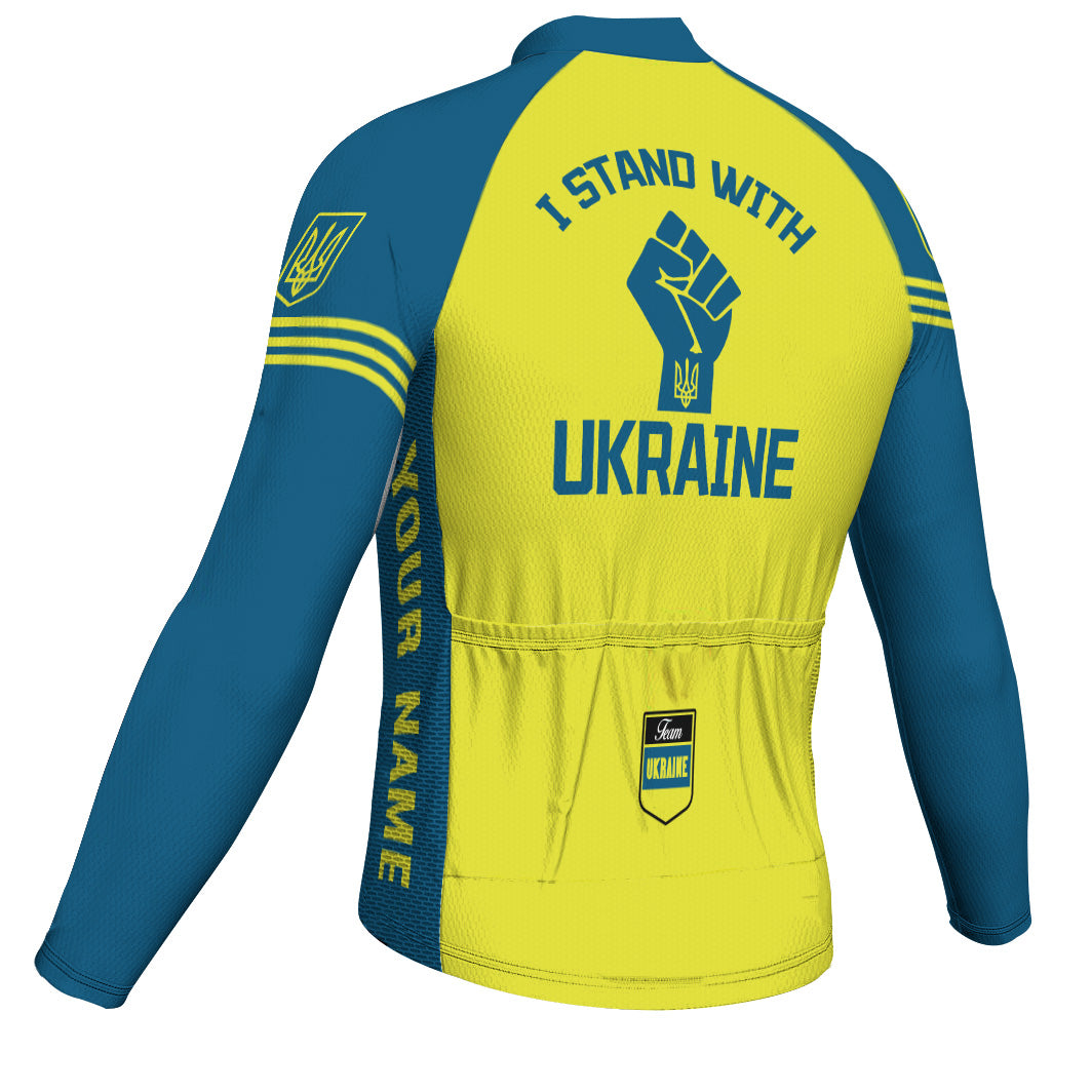 Customized Ukraine Winter Thermal Fleece Long Sleeve Cycling Jersey for Men
